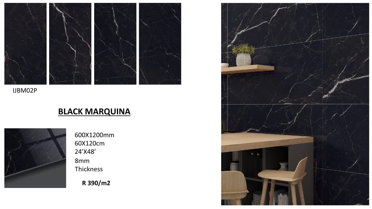 The Marquina Polished Marble Tile with its deep black base and striking white veining, this tile makes a bold statement of sophistication and timeless style.